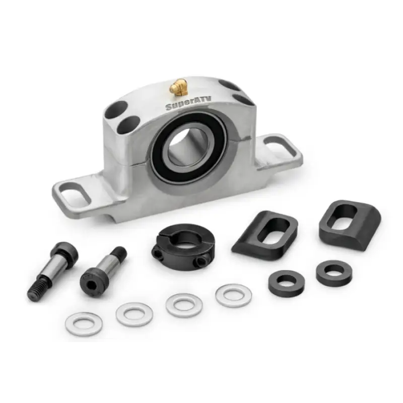 Upgrade your Polaris with the SuperATV cast heavy-duty carrier bearing, designed for enhanced strength and durability. Made from A380 cast aluminum, this carrier bearing is built to withstand tough conditions while ensuring long-lasting performance. Its greaseable, fully sealed design provides superior protection against wear, while the self-aligning bearing reduces vibration for smoother rides. A locking collar ensures the bearing remains secure, and the two-piece design simplifies installation.